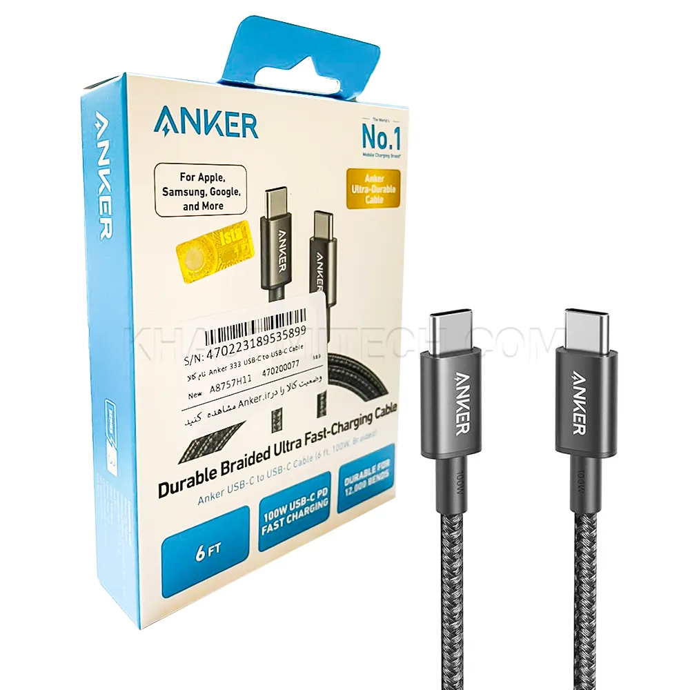 - نوع کابل : USB-C به USB-C با روکش بافته شده