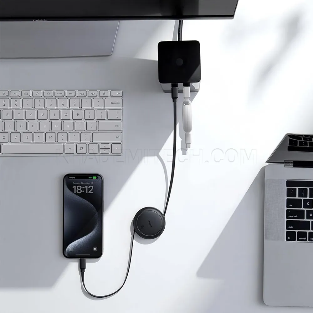 کابل شارژ قرقره ای تایپ سی بیسوس مدل BASEUS P10364500111-01 PD 60W مشکی | اپل3