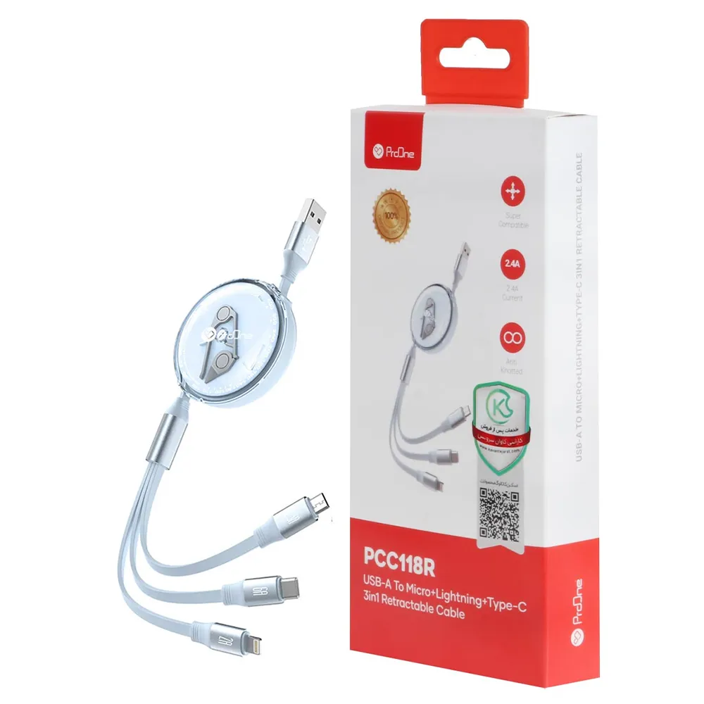 کابل شارژ و تبدیل USB سه در یک پرووان مدل PROONE PCC118R 1.1M آبی | اپل3