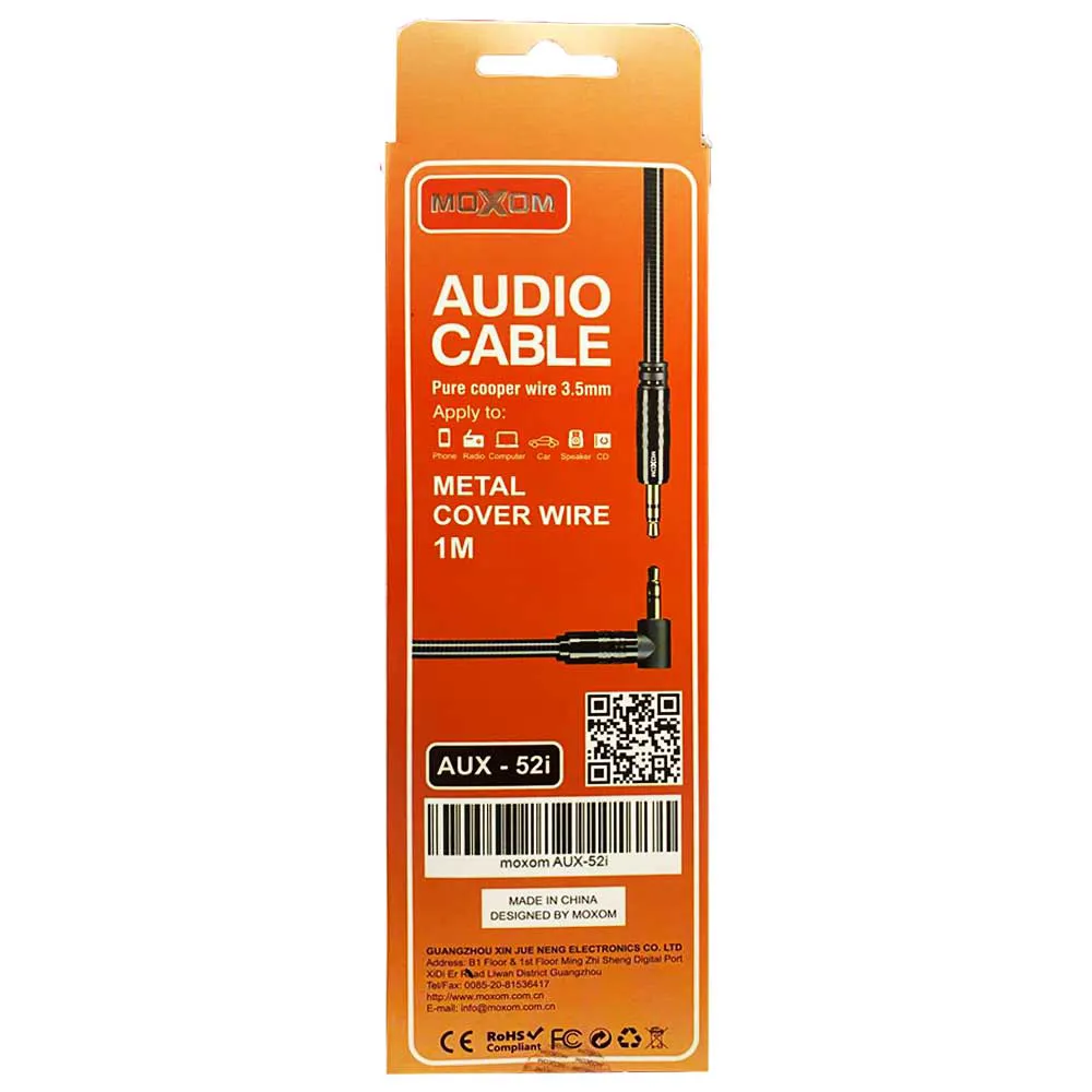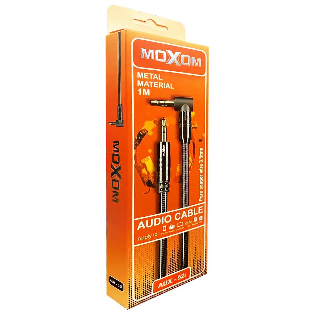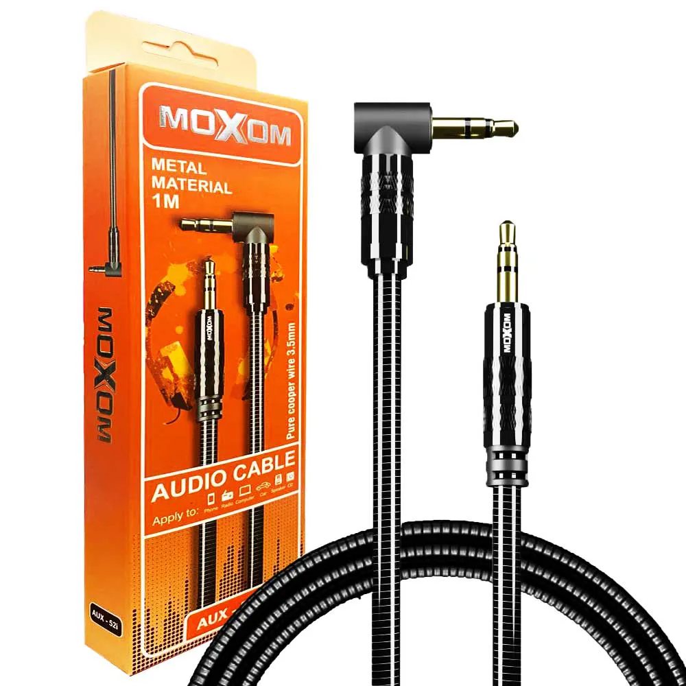 کابل صدا موکسوم مدل MOXOM AUX-52i فلزی 90درجه | اپل3