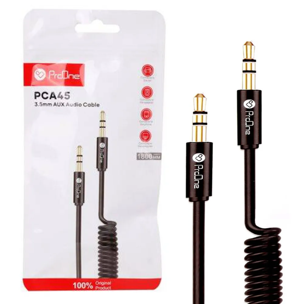 کابل صدا پرووان PCA45 AUX مشکی PROONE فنری | اپل3