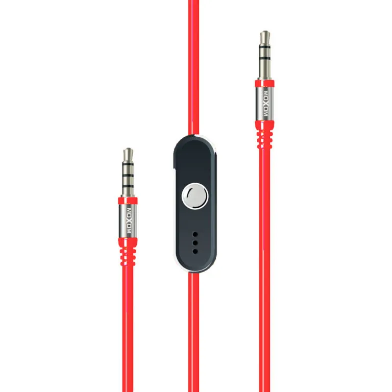 کابل صدا میکروفن دار موکسوم مدل MOXOM AUX-41M 1M قرمز | اپل3