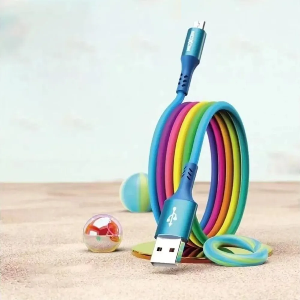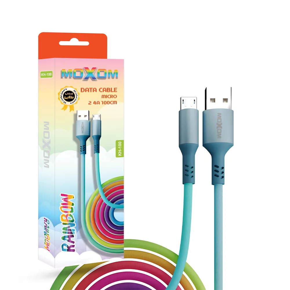 کابل KH-100.MICRO رنگین کمان MOXOM یکی از پر فروش ترین سیم شارژر های گوشی اپل در بازار است