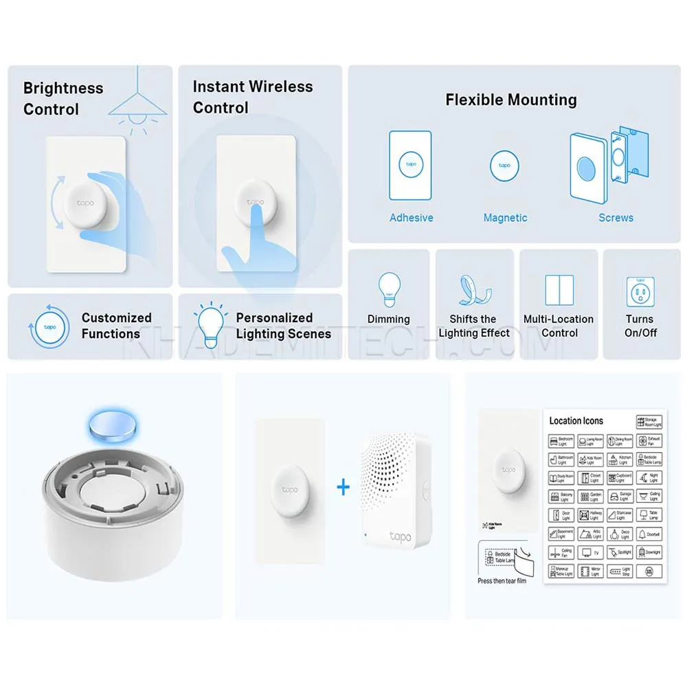 113027810کلید هوشمند تی پی لینک Tp-Link S200D به صورت یک پنل هوشمند ساده طراحی شده که در حین سادگی بسیار کاربردی است. دارای سه روش استفاده شامل تک ضربه ای برای روشن و خاموش کردن، دو ضربهای برای تغییر افکت های نوری و حالت چرخشی برای تنظیم دمای نوری و شدت روشنایی است. این کلید هوشمند دارای استاندارد RoHS است و از مواد پلاستیکی دوستدار طبیعت ساخته شده است. همچنین این کلید به گونهای طراحی شده است که در سه حالت پیچی، چسبی و مغناطیسی قابل نصب است.