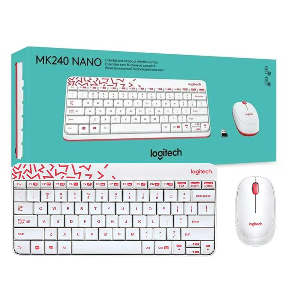کیبورد و ماوس بی سیم لاجیتک مدل LOGITECH MK240 NANO سفید قرمز | اپل3