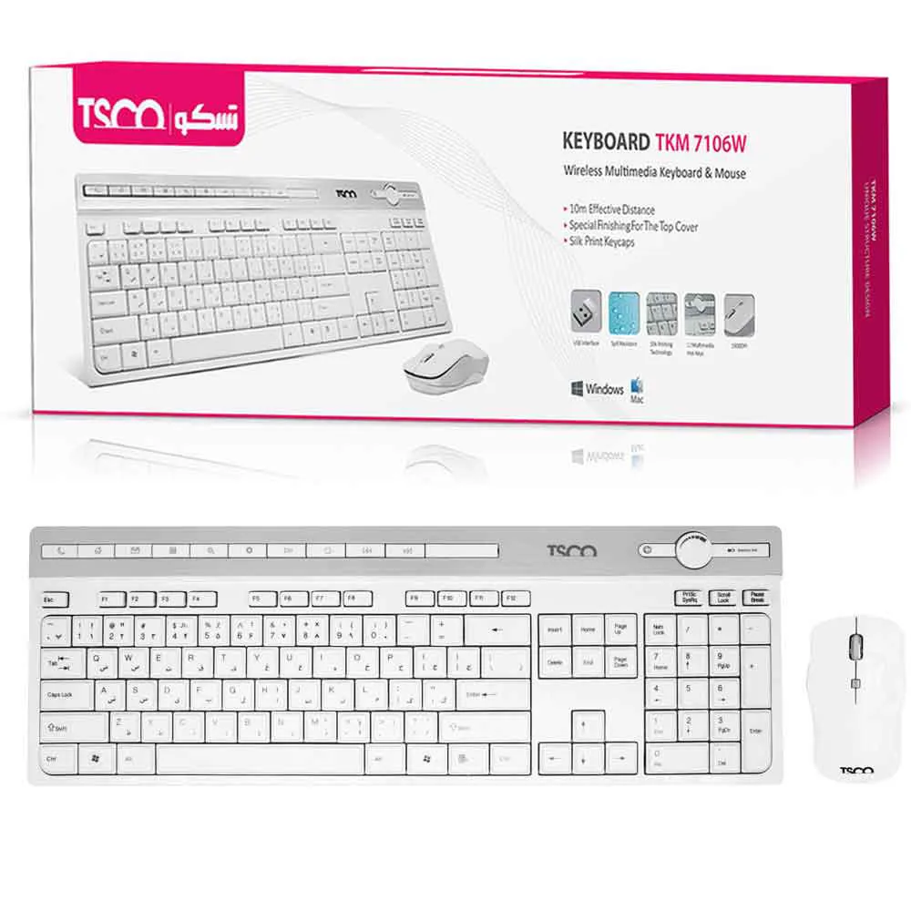 کیبورد و ماوس بی سیم تسکو مدل TKM7106W TSCO سفید | اپل3
