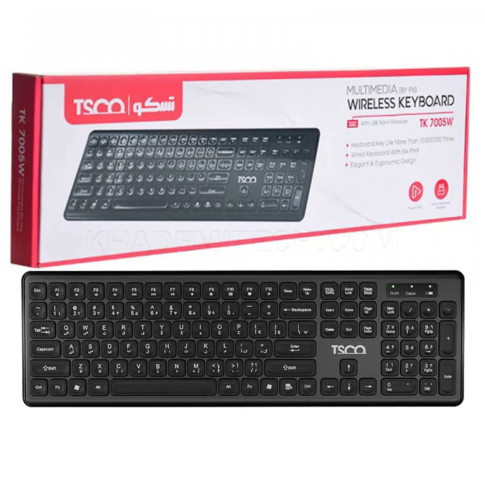 کیبورد بی سیم تسکو مدل TSCO TK7005W مشکی | اپل3