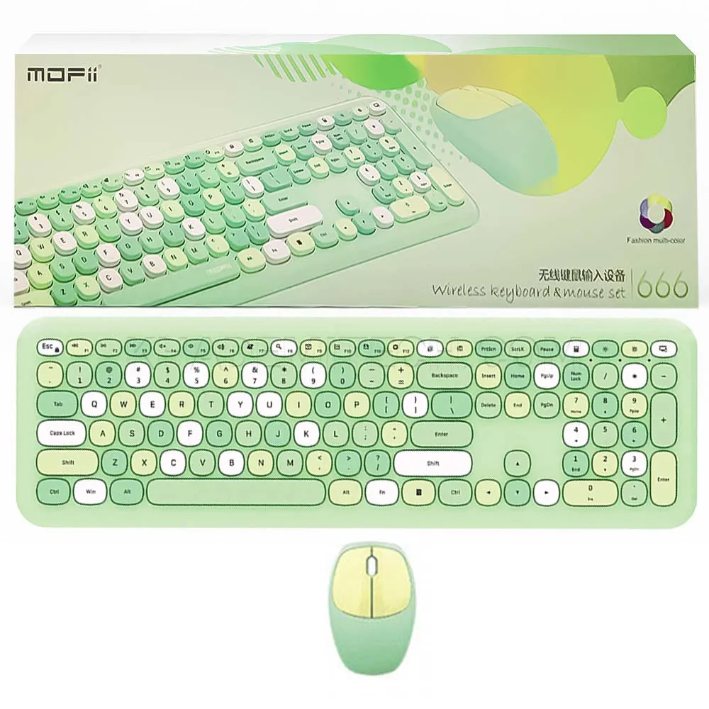 کیبورد و ماوس بی سیم مافی مدل MOFII 666MIX فانتزی سبز | اپل3