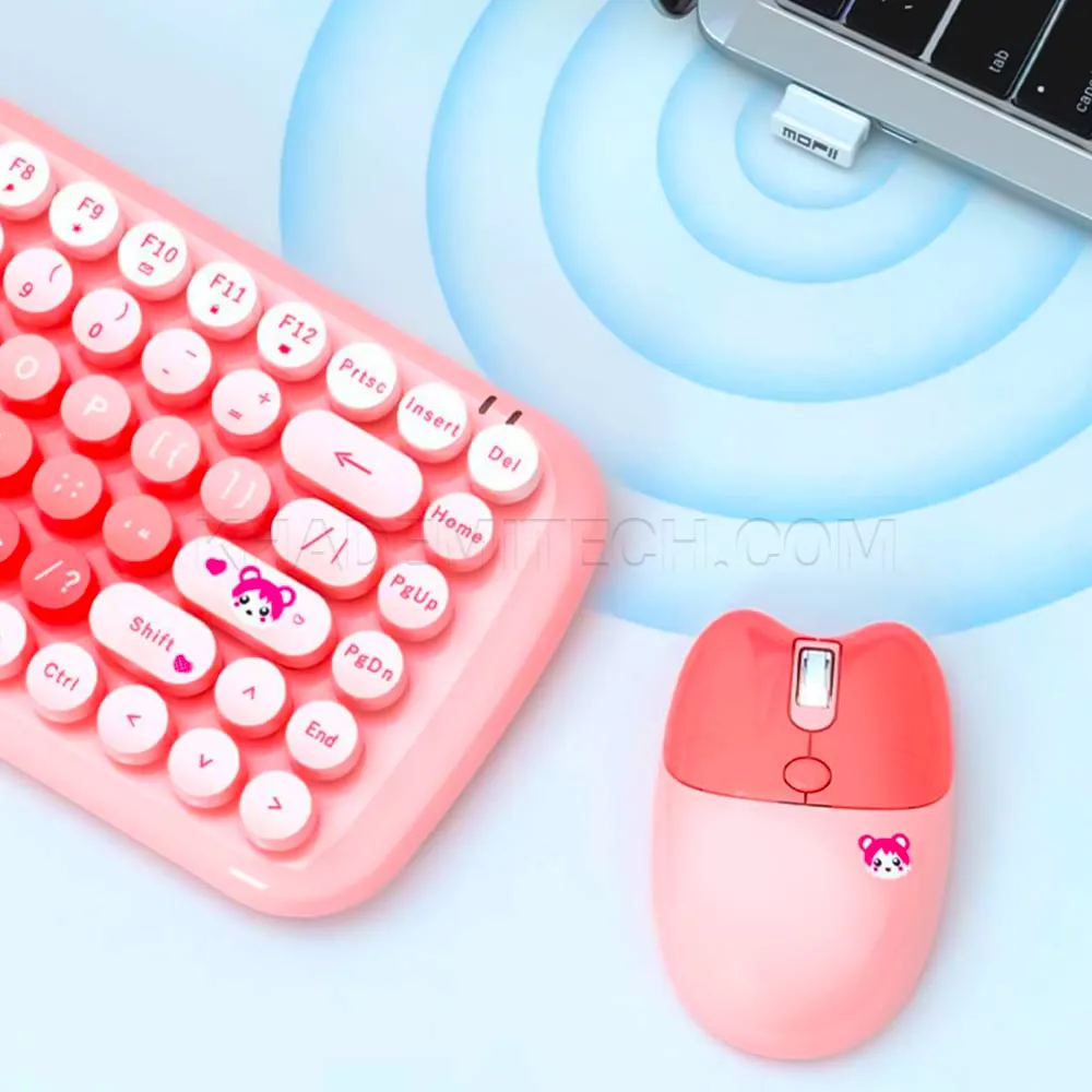 کیبورد و ماوس بی سیم مافی مدل MOFII CANDY فانتزی گربه ای صورتی | اپل3