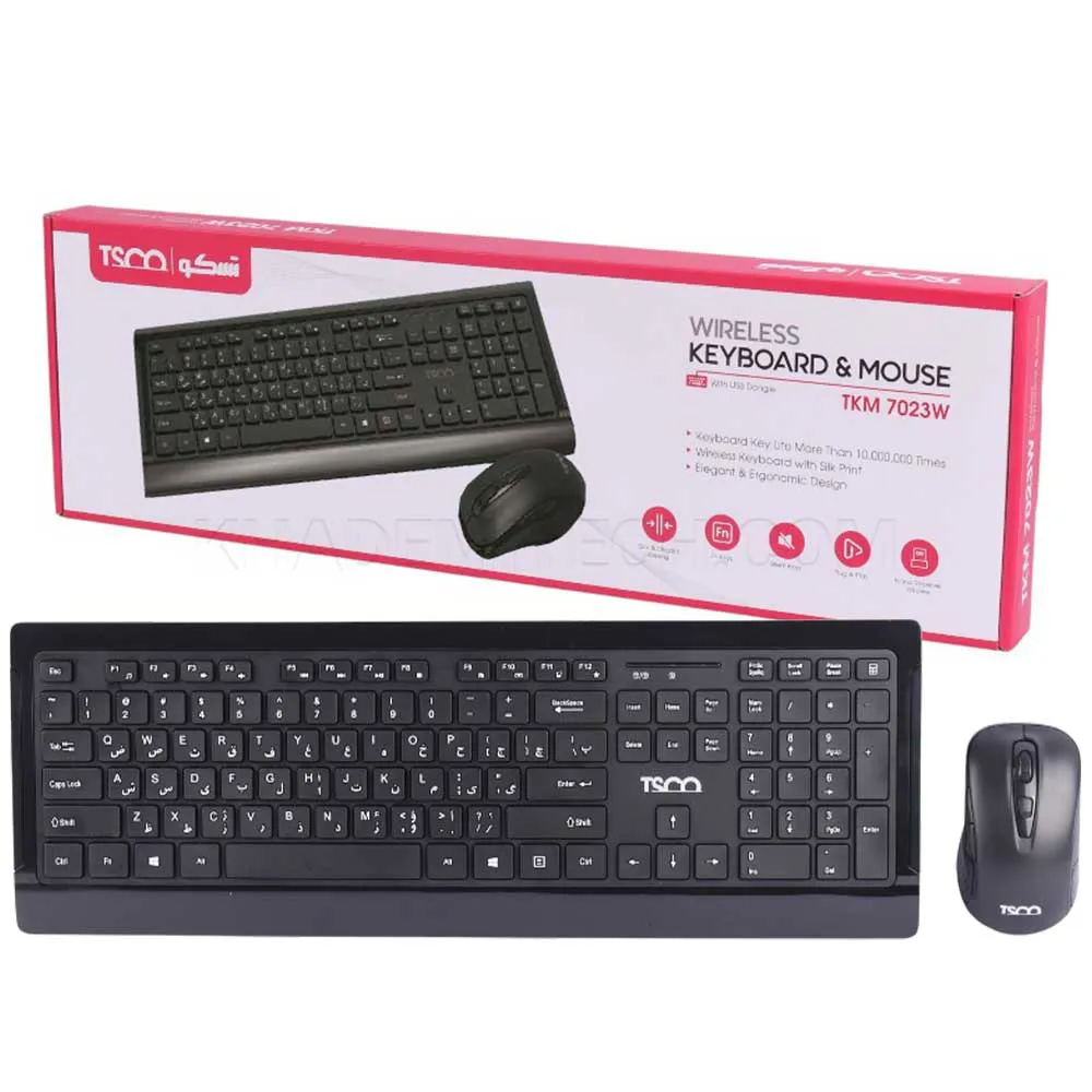 کیبورد و ماوس بی سیم مدل TSCO TKM7023W مشکی | اپل3