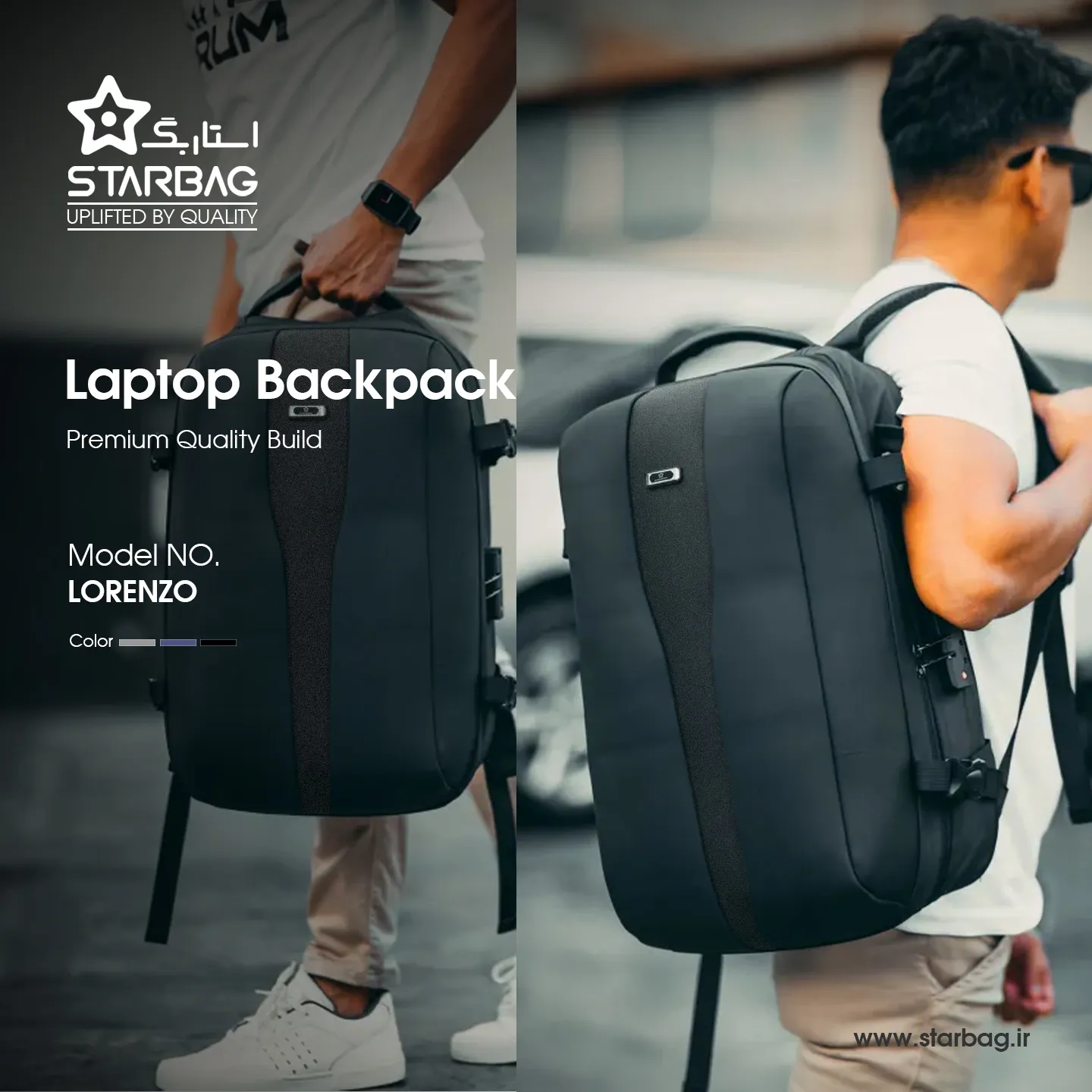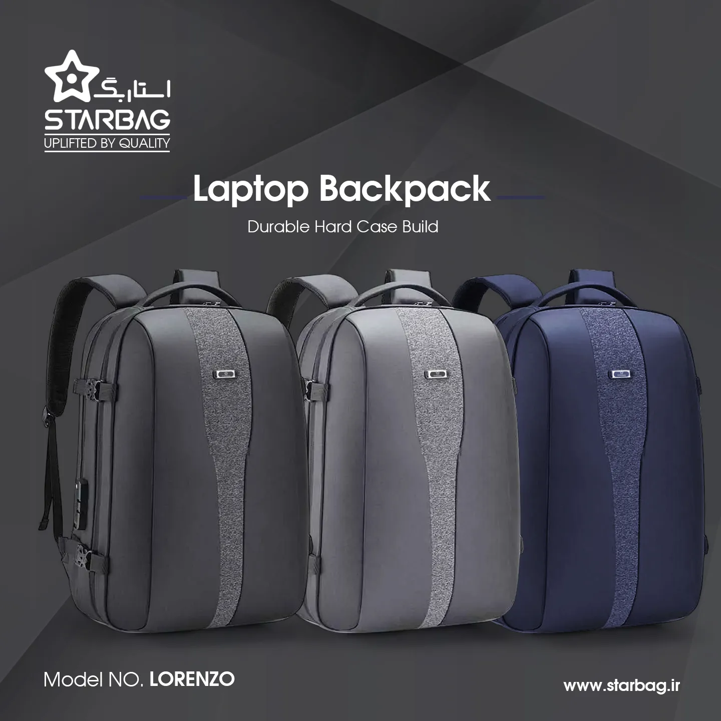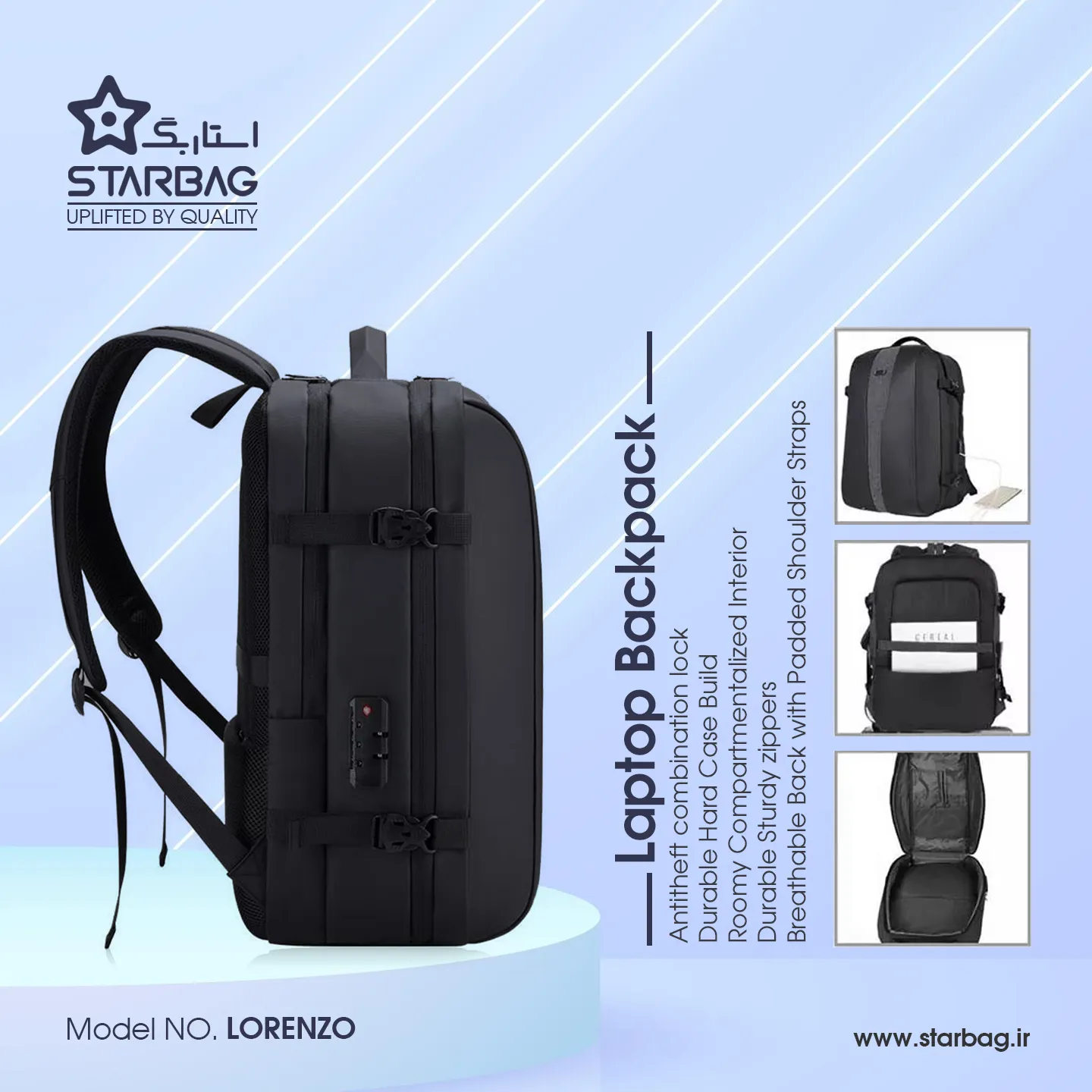کیف کوله لپ تاپ لورنزو LORENZO مشکی | اپل3