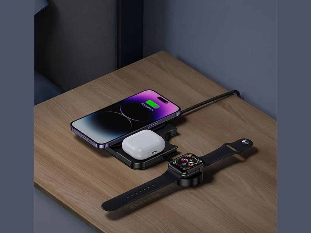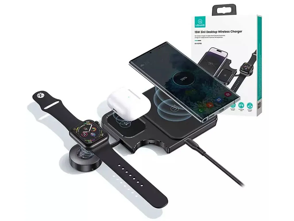 شارژر بی سیم یوسمز مدل 3IN1 CD190 Usams مشکی | اپل3