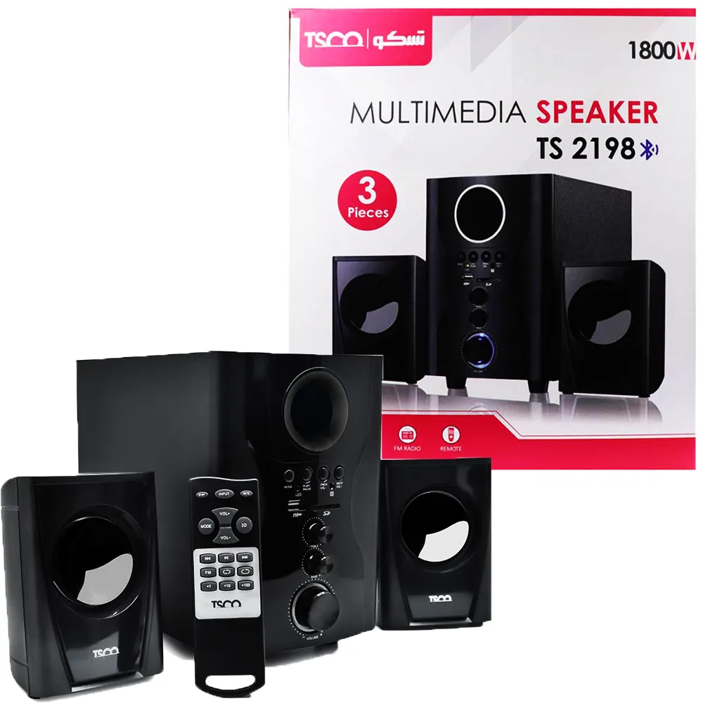 اسپیکر خانگی تسکو مدل TS 2198اسپيکرهاي روميزي همواره ، همراه خوبي براي روي ميز کار شما بوده اند .نوع اتصال اين اسپيکرها عموما به صورت بيسيم و باسيم بوده است.TS 2198 جز آن دسته از اسپيکرهايي مي باشد که داراي فناوري بلوتوث هستند و امکان اتصال به صورت بيسيم را دارند و در ديگر محصولاتي که فاقد اين فناوري بوده اند مي توان از اتصال کابل صدا براي برقراري ارتباط استفاده کرد .همچنین ورودي کارت حافظه و درگاه USB از ويژگيهاي خوب اين سري از اسپيکرهاي تسکو بوده است .در کنار اکثر محصولات اسپيکر TSCO يک عدد ريموت کنترل براي برقراري ارتباط راحتتر با اسپيکر قرار داده شده است. قابليت برقراري ارتباط با ايستگاههاي راديويي در اسپيکرهاي «تسکوTSCO» يک مزيت به حساب ميآيد.