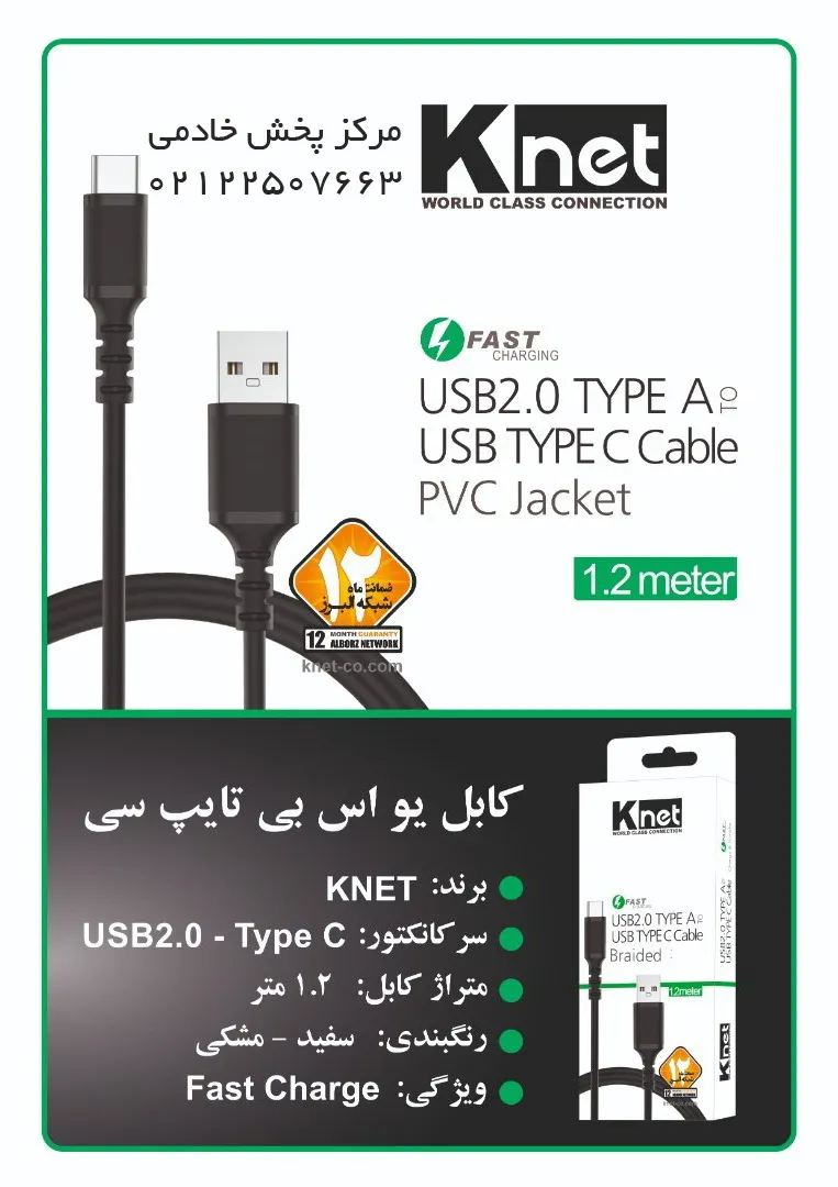 کابل TYPE-C به دوربین KNET-PLUS 1.2M | اپل3
