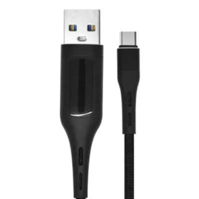 کانکتور تایپ سی فلزی، طول کابل ۱۰۰ سانتی متر و روکش کابل از جنس نایلون بافته شده مقاوم در برابر خمیدگی و پارگی دارای نمایشگر ولتاز و جریان، شدت جریان عبوری حداکثر ۵ آمپر و مقاوم در برابر نوسانات ولتاژ و جریان برق