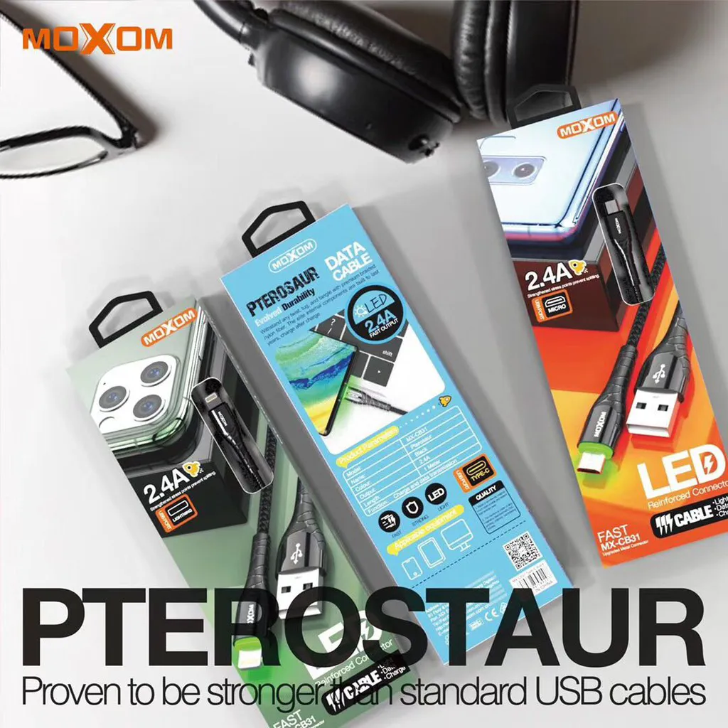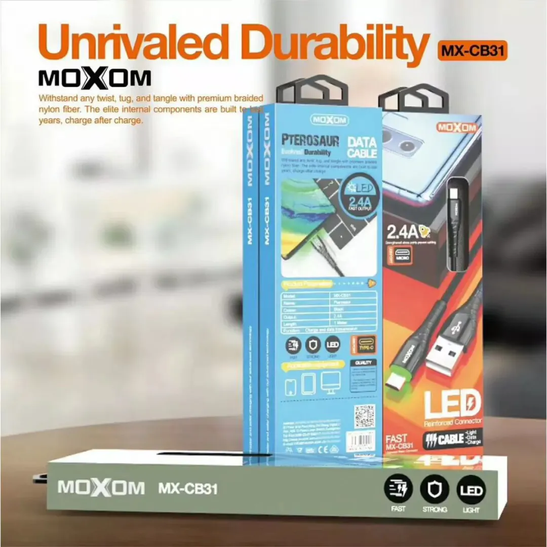 0کابل TYPE-C CB31کنفی مشکی MOXOM | اپل3